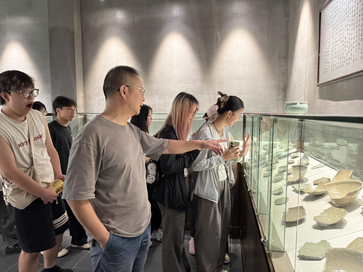 考察首站聚焦古窑文化传承。在福建省武夷山市,师生探访宋代遇林亭窑址,透过出土黑釉瓷茶盏遗存,追溯宋元时期海上丝绸之路的陶瓷贸易盛景。浙江龙泉的大窑-金村龙泉窑国家考古遗址公园内,师生在龙窑遗址前聆听专家解读青瓷的釉色奥秘,从匣钵残片与窑具堆积中感知七十二道工序的匠心沉淀。江西吉州窑遗址的木叶盏,则让师生惊叹于窑工将自然物象与民俗信仰融入器物装饰的智慧。陈日红教授强调:“古窑遗址是工艺技术的活态档案,需以考古思维解读材料、形制与工艺的共生关系。”