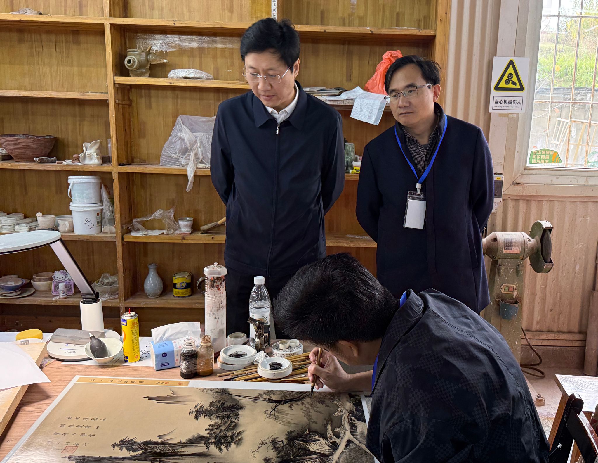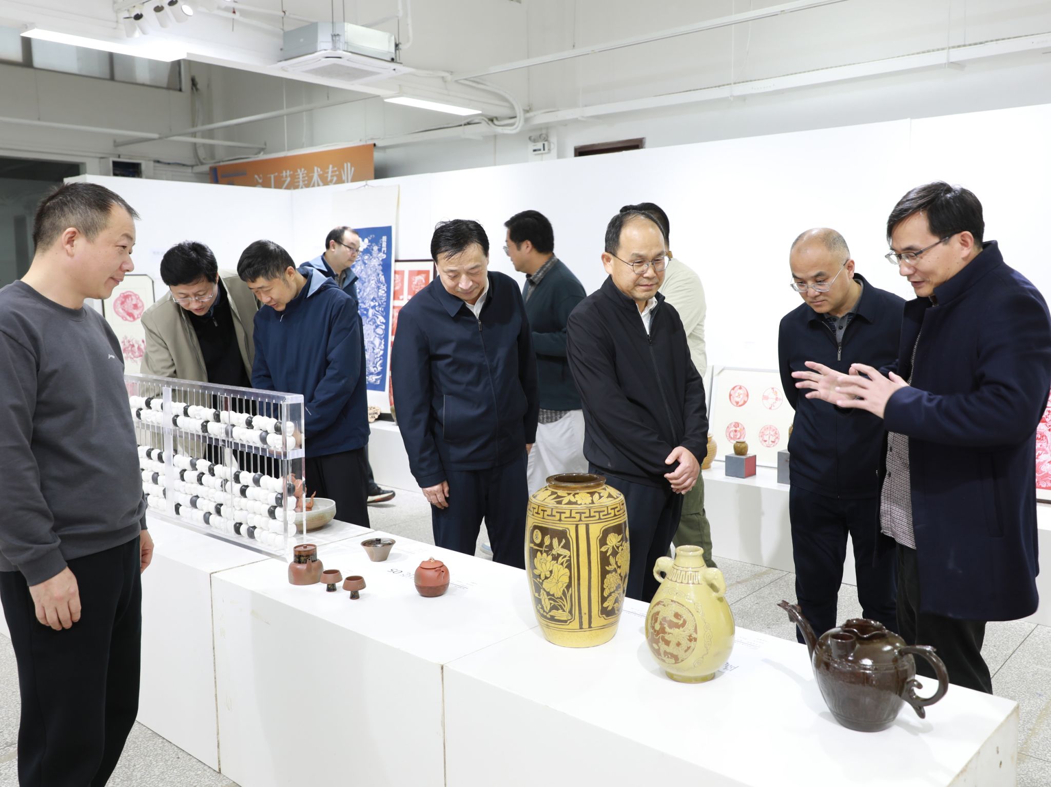 省经信厅消费品工业处处长高佳(左一)巡视陶瓷工艺实操考场